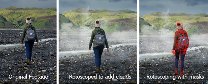 Măștile implică o abordare meticuloasă cadru cu cadru, deși puteți utiliza funcția de urmărire pentru a crea măști intermediare pentru a economisi timp. Pentru a rotoscopiza acțiunea, artiștii VFX trebuie să deseneze masca în jurul obiectului vizat și să facă ajustări cadru cu cadru.