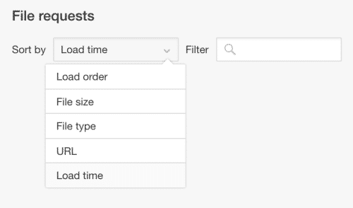 Acum, pentru a identifica motivul unui timp lung de încărcare, trebuie să sortați „waterfall” Pingdom, alegând „timpul de încărcare” din meniu.