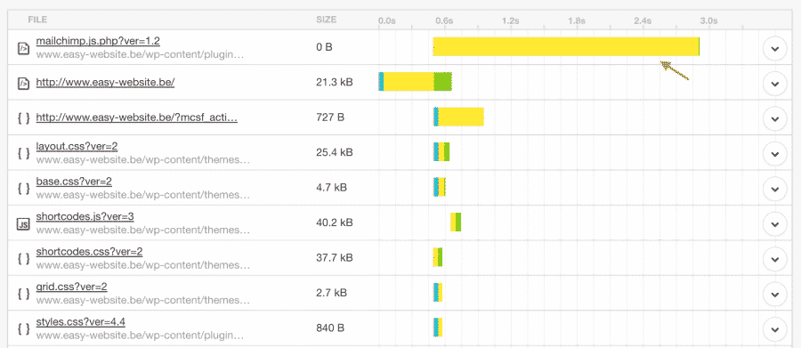 De la prima vedere la waterfall Pingdom, am putut localiza imediat cauza problemei. Citiți cu atenție rândurile acestui tabel:
