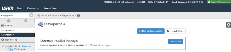 Totul rulează sub: WHM → Software → EasyApache 4.