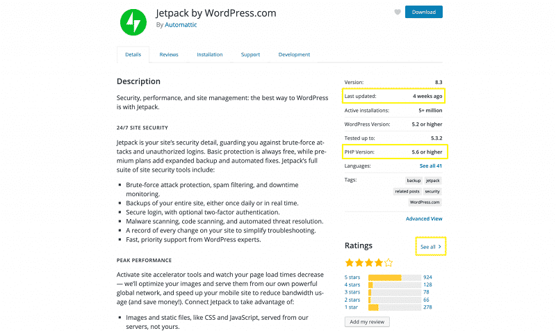 Puteți găsi majoritatea (dacă nu toate) aceste informații uitându-vă la lista unui plugin în Directorul de pluginuri WordPress: