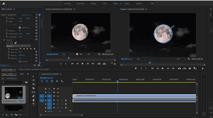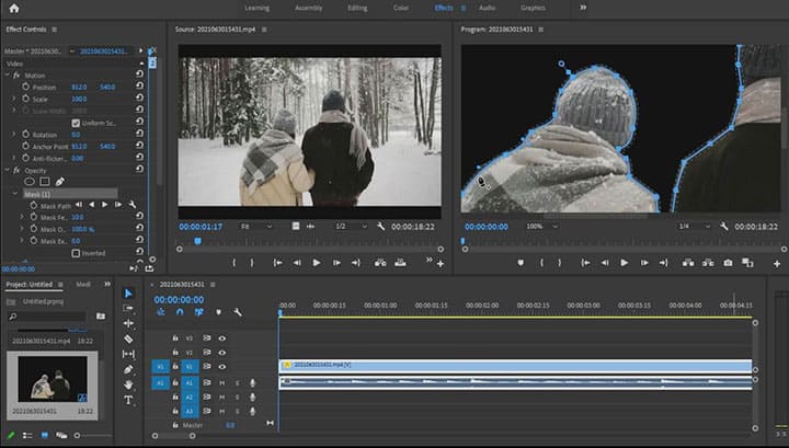 Pentru a profita de mascare și pentru a crea efecte de clonare, tranziții fără întreruperi sau alte efecte creative, nu trebuie să aveți un software profesional de mascare video, deoarece aproape toate programele avansate de editare video sunt proiectate cu funcția de mascare. În partea următoare, vă voi arăta cum să creați o formă diferită de mască folosind Premiere Pro. După aceasta, nu ar trebui să existe nicio problemă să faci o mască cu DaVinci Resolve, Kdenlive sau orice alt software de editare video, deoarece modalitățile de a aplica masca video cu diferite instrumente sunt similare.