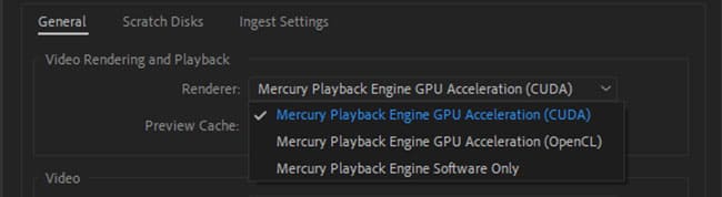 Să presupunem că problema încă există, puteți încerca să activați accelerarea GPU Mercury Playback Engine (CUDA/OpenGL). Pentru a ajunge acolo, accesați fișierul din bara de meniu de sus, selectați Project Settings > General > Render, apoi selectați opțiunea de redare adecvată.
