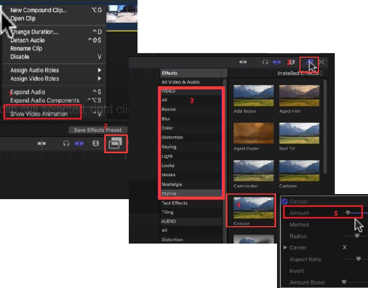 Pasul 3: Navigați la categoria Video > Stylize category> faceți dublu clic pe Censor Effect.