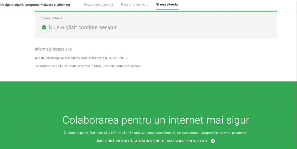 De asemenea, puteti sa verificati site-ul utilizand instrumentul Google de analiza a navigarii in conditii de siguranta.