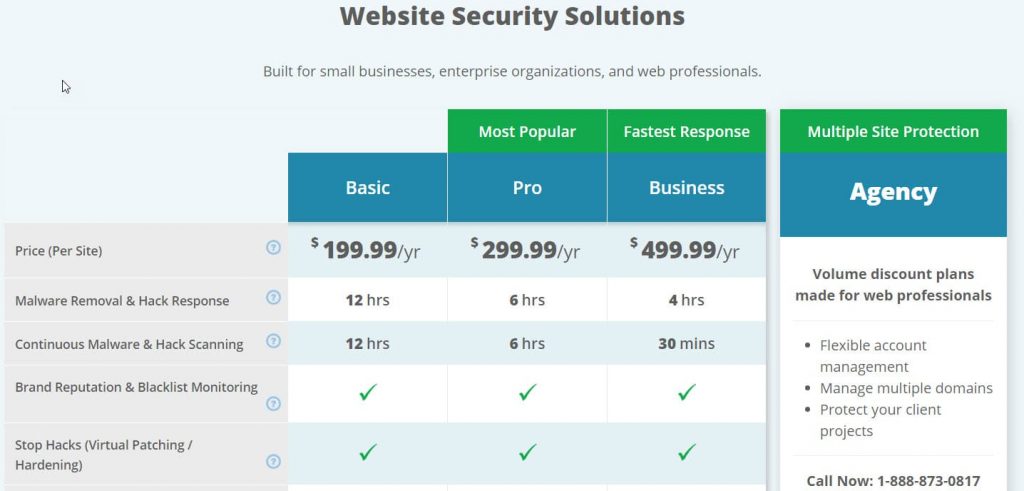 Pachetul Basic costa 199,99 de dolari pe an, iesiti intr-un mare avantaj, avand in vedere ca un expert in securitate va poate percepe o taxa de cateva zeci de dolari pe ora. Fiti siguri ca nu va termina intr-o ora. Pentru un site complex sau un mare magazin online, o treaba ca asta va poate duce la cateva zile nu ore.