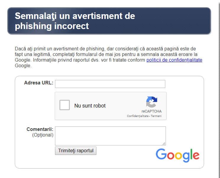 In cazul in care nu vedeti probleme de securitate in instrumentele Google pentru webmasteri, atunci trebuie sa semnalati un formular de avertizare incorect pentru phishing.