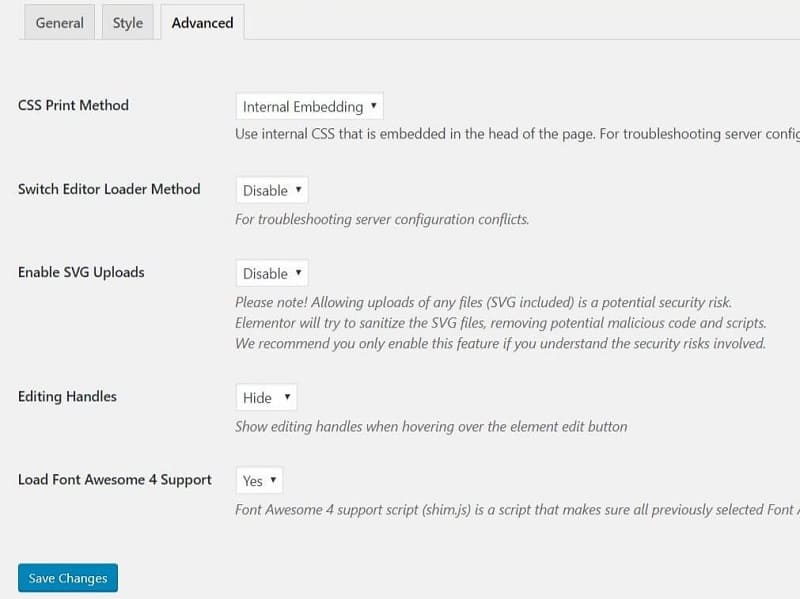 Modulul SVG al Elementor va face tot posibilul să igienizeze fișierele încărcate pe site-ul dvs., dar cel mai bine este să încărcați fișiere SVG numai din surse cunoscute și de încredere.