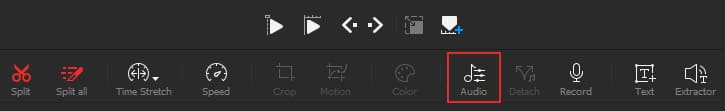 Faceți clic pentru a selecta piesa audio din cronologie. Apoi deschideți Editor audio făcând clic pe Audio în bara de instrumente.