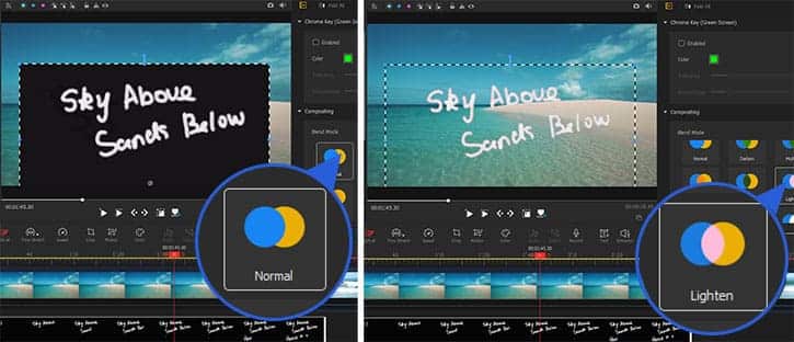 Pasul 3 – Adăugați acest videoclip în Track Overlay și selectați un Blend Mode (mod de amestecare) potrivit.