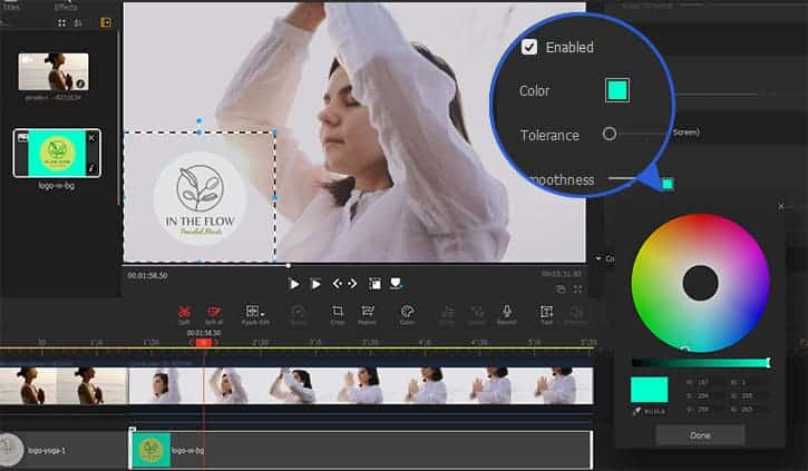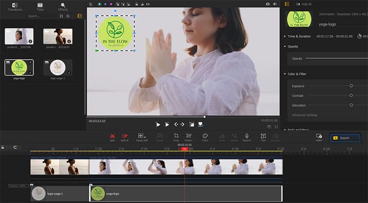 Este ușor să adăugați sigle ca imagine de suprapunere și să o reglați fin cu modul de amestecare și cheia cromatică, atunci când este necesar.