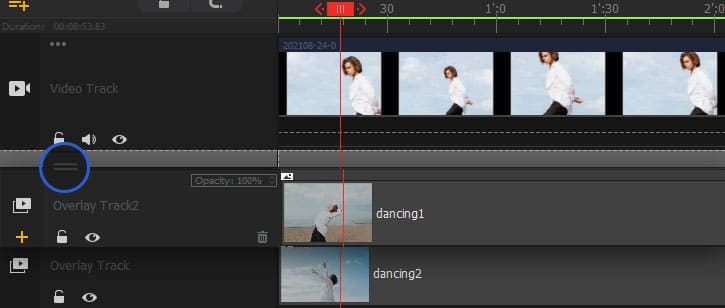 Apăsați pe pictograma cu două linii și trageți mouse-ul pentru a muta pista suprapusă în sus sau în jos.