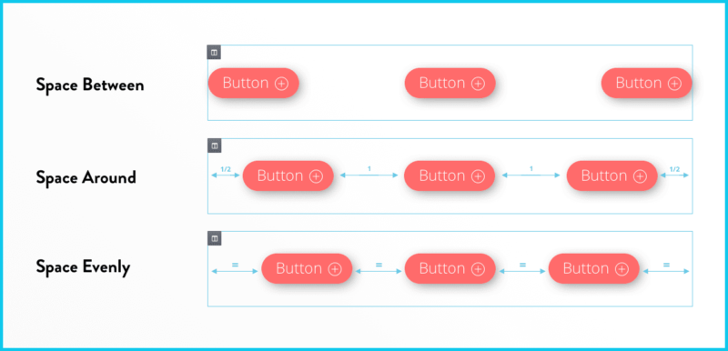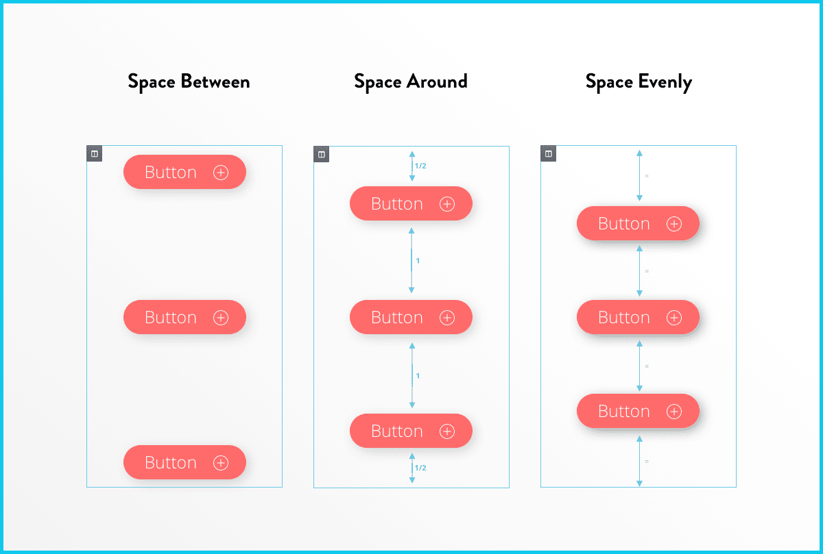 - Space Around – Widgeturile sunt distanțate în mod egal, iar marginile sunt jumătate din dimensiunea spațiului dintre widget-uri.