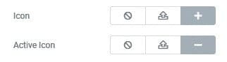 Unele widget-uri, cum ar fi widget-urile Accordion și Toggle, vor avea comenzi cu pictograme în linie precum aceasta: