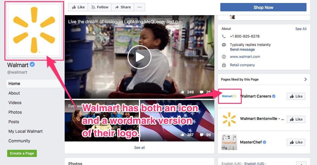 Observati cum logo-ul Walmart are atat pictograma “raza soarelui”, cat si semnul, care poate fi folosit separat.