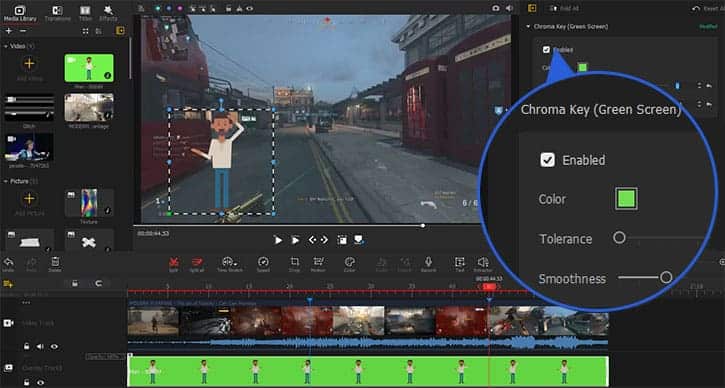 Puteți folosi caracteristica Chroma Key pentru a elimina ecranul verde, astfel încât videoclipul suprapus să aibă un fundal transparent.