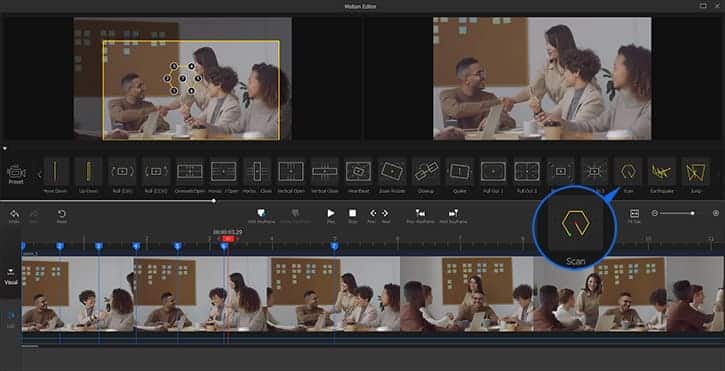 Scan trece cu mouse-ul în jurul materialului și sfârșește prin a restabili dimensiunea inițială a cadrului. Pare a fi înregistrat cu o cameră portabilă. De asemenea, puteți transforma un colaj foto într-un videoclip scanând fiecare imagine din colecție.