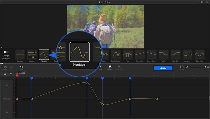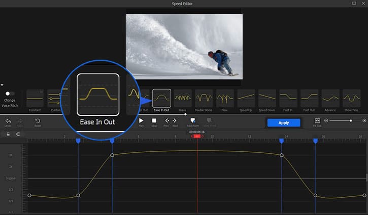 Pentru a comuta între mișcarea super-rapidă și super-lentă fără sărituri bruște, puteți utiliza instrumentul de creștere a vitezei al VideoProc Vlogger. Vă permite să variați viteza videoclipurilor sportive în mod dinamic, și anume, aveți control deplin asupra modului în care viteza se schimbă de la normal la rapid, rapid la lent… Deci, tranziția între două segmente de viteză se desfășoară fără sărituri.