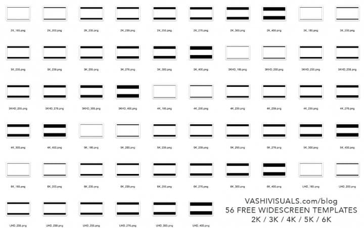 Google „black bars PNG” și descărcați un șablon lettebrox. Singurul lucru de remarcat este să alegeți cel cu rezoluție înaltă în loc de cel mic. Aș recomanda cu căldură VashiVisuals Blog, de unde puteți descărca PNG bare negre cu diferite raporturi de aspect și rezoluții de la 720p la 6K. Descărcați pachetul de șabloane cu lettebrox HD de la Film Dog Pro pentru bare negre de 720p și 1080p PNG și pachetul presetat VashiVisuals Extreme pentru ecran lat pentru șabloane de tip letterbox HD/2K/UHD/3K/4K/5K/6K.