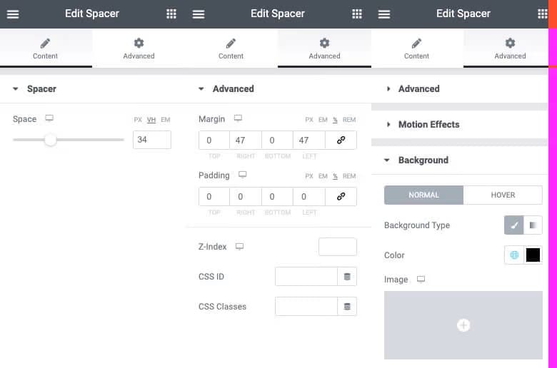- Setați înălțimea dorită a widget-ului în PX, VH sau EM din comenzile widget-ului spacer.