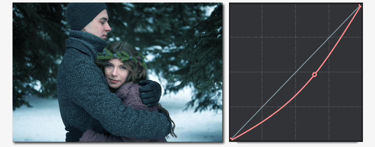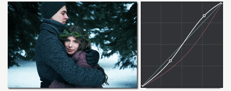 Corecția culorilor cu curbe vă oferă șansa nu numai de a regla orice nuanțe date, ci și de a crește contrastul general al imaginii. Această ajustare poate fi utilă dacă doriți să ascundeți detalii nedorite și să creați umbre mai profunde în jurul subiectului central. Reveniți la canalul RGB și creați o ușoară curbă „S” pentru a accentua atât zonele întunecate, cât și cele deschise. Cu toate acestea, mutați Tone Curve cu atenție, în caz contrar fotografiile corectate în culori vor arăta destul de grotesc.