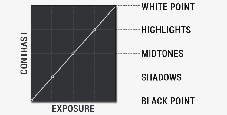 Panoul Curbe din PhotoWorks este reprezentat printr-un grafic gri cu o linie diagonală care începe într-un colț și se termină în celălalt. Axa X controlează contrastul fotografiei, în timp ce axa Y este utilizată pentru a-și regla expunerea. Punctul alb este poziționat în extremitatea din dreapta. Apoi vin Highlights. Mijlocul liniei este marcat de Midtones. Umbrele sunt plasate mai jos, iar Punctul Negru poate fi găsit la capătul din stânga. Pe măsură ce vă deplasați în jos axa, tonurile din imagine devin mai întunecate și mai luminoase pe măsură ce vă deplasați mai sus.