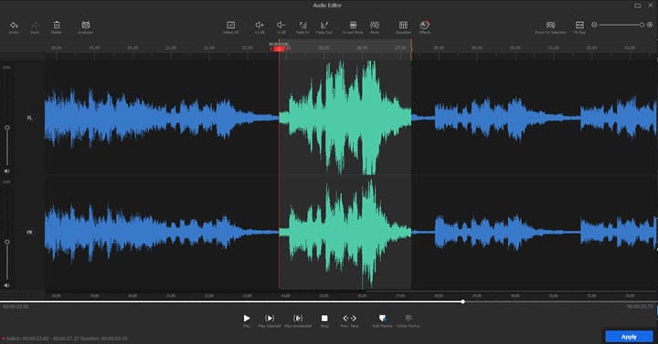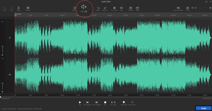 Dacă doar o parte a videoclipului dvs. nu este suficient de tare, puteți apăsa și trage cursorul pe forma de undă pentru a o selecta, apoi faceți clic pe +1dB pentru a îmbunătăți sunetul doar pentru acest segment.