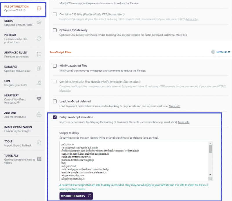 Dacă doriți să întârziați fișierele JavaScript, puteți utiliza funcția Delay JavaScript Execution oferită de WP Rocket.