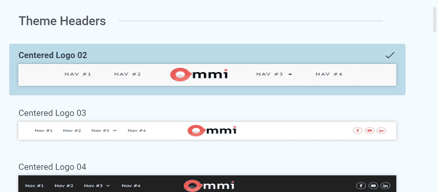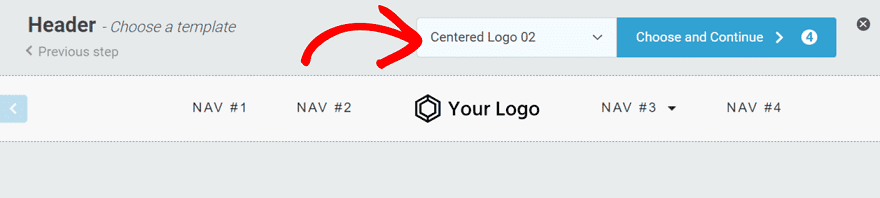 Al treilea pas aici vă permite să selectați un antet pentru site-ul dvs. web. Secțiunea antet se află în partea de sus a site-ului dvs. De obicei, constă din logo-ul companiei dvs., meniul site-ului, link-uri de rețele sociale etc.