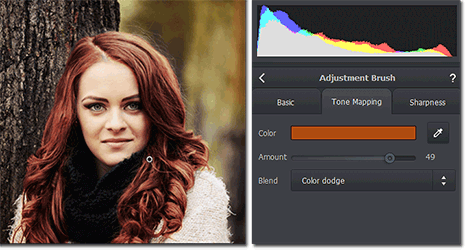 După aceea, deschideți fila Tone Mapping. Faceți clic pe setările de culoare și pe paleta afișată alegeți nuanța pe care doriți să o aplicați. Faceți părul mai întunecat sau mai deschis sau chiar testați culorile părului, cum ar fi verde sau albastru.