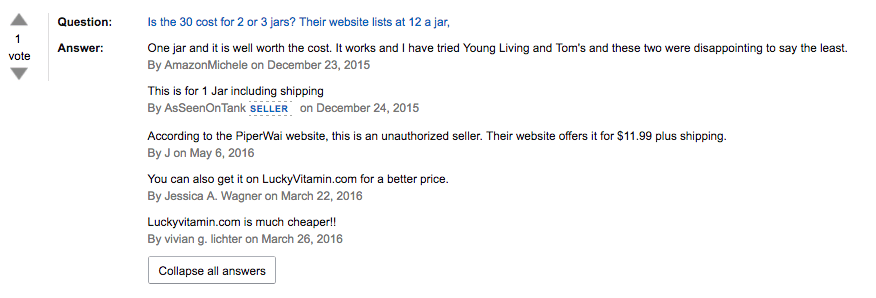 Aveti incredere intr-o parte necunoscuta pentru a gestiona continutul, preturile si schimburile cu clientii in numele brandului dvs.? Presupun ca majoritatea dintre voi va scutura capul spunand “nu” si cu un motiv bun. De exemplu, mai jos se afla cateva exemple cu plangerile clientilor despre un produs Shark Tank care este vandut de un vanzator tert care nu este afiliat de brand si cu un pret listat de aproape 3 ori fata de pretul magazinului autentic.