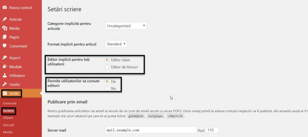 Dupa ce ati instalat si activat pluginul Editorului clasic, trebuie sa-l configurati putin: