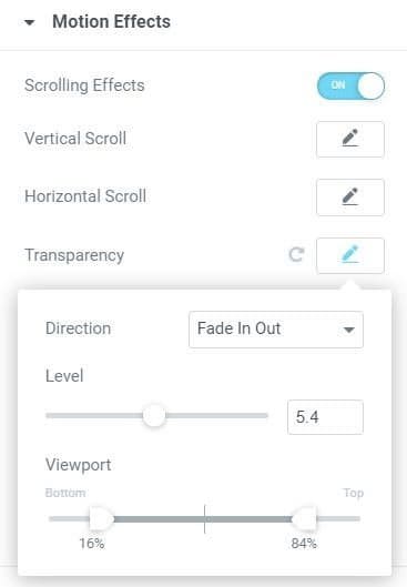 Efecte de Defilare cu Transparență vă permit să faceți treptat elementele mai transparente sau mai vizibile în corelație cu scroll-ul vizitatorului. Un exemplu este ca un titlu să apară și apoi să se dizolve în conformitate cu scroll.