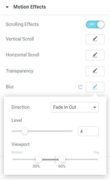 Efecte de Defilare Estompare. Blur vă permite să determinați treptat elementele să treacă de la clare la neclare în corelație cu derularea vizitatorului. Un exemplu este ca o imagine de fundal să apară și apoi să se dizolve în conformitate cu derularea.