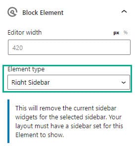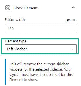 Element Bloc – Bară Laterală în GeneratePress – Acest tip va înlocui întreaga bară laterală stânga/dreapta cu ceea ce ați construit în editor. Această opțiune necesită o bară laterală implicită din stânga/dreapta pentru a exista pe pagina căreia este aplicată.