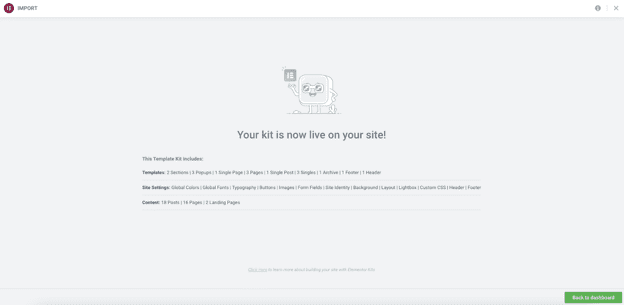 Utilizând funcția Import Kit, puteți importa pachetul Elementor Export Kit de pe alt site web.