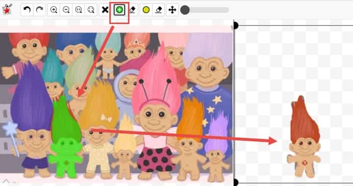 2. Folosiți butonul verde Adăugați pentru a desena zona pe care doriți să o păstrați și utilizați instrumentul Eraser pentru a vă ajusta selecția.