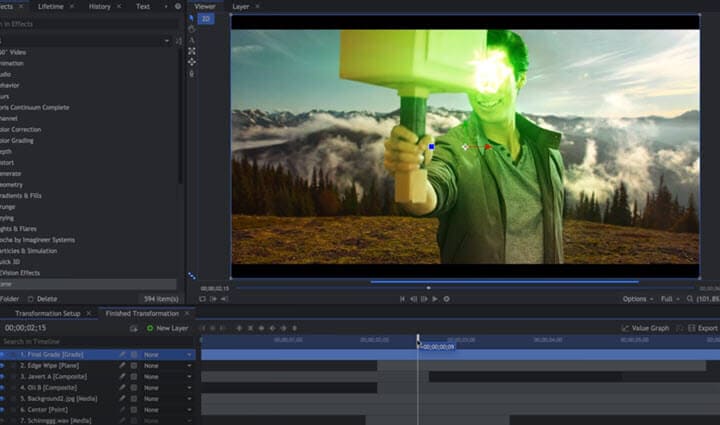 Dacă îți plac filtrele oferite în InShot, vei adora efectele video grozave oferite de HitFilm Express. Pachetele sale VFX excelează în a vă transforma filmările în producții de film impresionante. Efectele de focuri de armă și de sabie laser (Războiul Stelelor), titlurile de animație îndrăznețe și strălucitoare sunt toate la dispoziție pentru a condimenta videoclipul. Există peste 410 de efecte și presetări de încercat. Cea mai bună parte? Pe paginile sale de tutorial pentru diferite efecte video, fișierele de proiect sunt gata pentru a fi descărcate. Aceasta înseamnă că puteți afla cum creează alții efectele, chiar în fișierul original al proiectului.