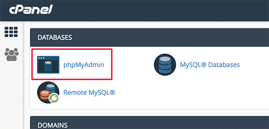 În primul rând, trebuie să vizitați tabloul de bord cPanel al contului dvs. de găzduire WordPress. Sub secțiunea bazei de date, faceți clic pe pictograma phpMyAdmin.