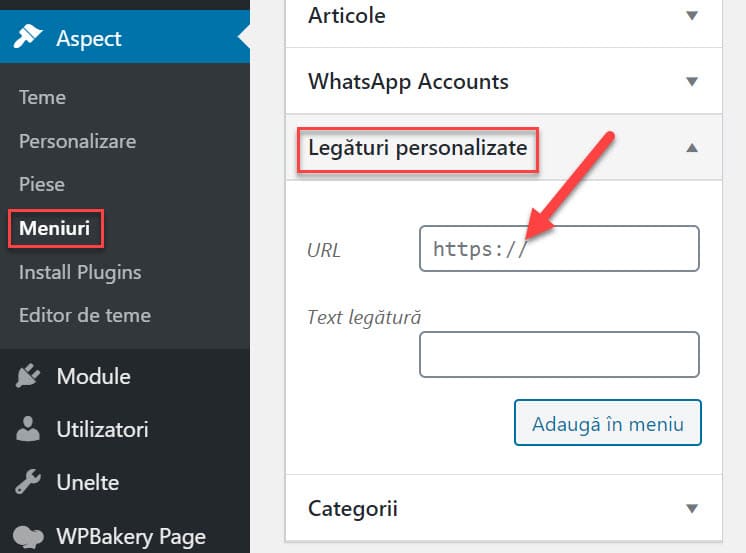 Dacă doriți să includeți un punct final în meniurile dvs., trebuie să utilizați secțiunea Linkuri: