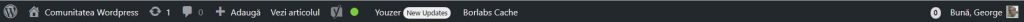 Bara de instrumente va permite sa vizualizati modificarile pe care le faceti la posturi, pagini sau la setari si cum va afecta acestea vizualizarea site-ului de catre vizitatorii dvs. Doar puneti mouse-ul in coltul din stanga sus pe Vizitati site-ul ( a se deschide intr-o fereastra separata , astfel sa puteti continua lucrul si sa nu afectati ceea ce lucrati, faceti click dreapta pe link si alegeti ,, Deschideti link-ul intr-o fila noua ” ).
