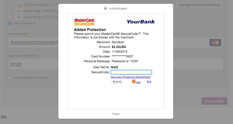WooCommerce PayPal Powered by Braintree acceptă verificarea tranzacțiilor prin 3D Secure, dar trebuie să aveți 3D Secure activat de reprezentantul dvs. Braintree pentru contul dvs.