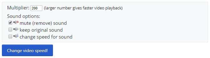 Pasul 3: Introduceți numărul multiplicatorului de viteză dorit. Se pare că orice număr este OK acolo, cum ar fi 200. Există, de asemenea, trei opțiuni pentru viteza audio, și anume, dezactivați sunetul, păstrați sunetul original și schimbați viteza pentru sunet. Selectați-l pe cel pe care îl preferați.