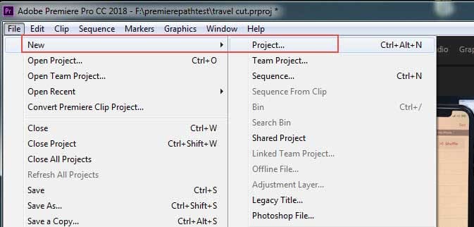 Pasul 1: Deschideți Premiere Pro CC și creați un nou proiect prin „Fișier > Nou > Proiect” din bara de meniu. De asemenea, Premiere Pro vă permite să importați fișiere Premiere Elements și After Effects.