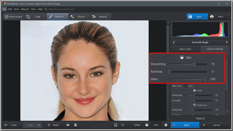 În fotografie, strălucirea este o problemă obișnuită. Uneori, aspectele strălucitoare arată ca un efect artistic și fac ca imaginile tale, în special apar în portrete. Dar, în majoritatea cazurilor, strălucirea este un defect, iar subiecții par a fi grași. Cum să eliminați strălucirea din fotografii? Ei bine, există câteva modalități simple de a încerca. Dacă sunteți utilizator de computer, salvați-vă imaginile cu PhotoWorks – un editor de fotografii puternic, dar pentru computer. Dacă aveți un Mac sau iPhone, încercați iPhoto pentru a elimina strălucirea ca și cum nu a fost niciodată pe fotografia dvs. Doriți să editați fotografii pe dispozitive mobile? RetouchMe este un alt instrument care vine cu opțiunea anti-orbire. Deși acum este disponibilă numai pe Android și iOS, versiunea web online este pe cale să apară.