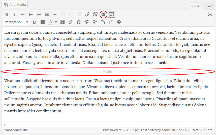 - Faceți clic pe pictograma link mai multe din editor pentru a insera eticheta mai multe.