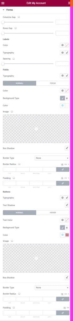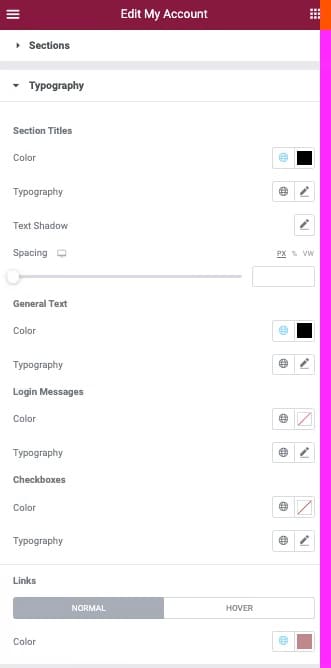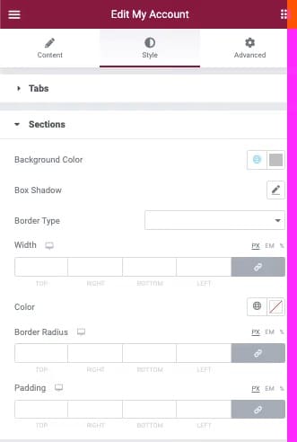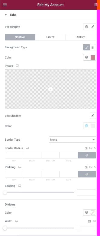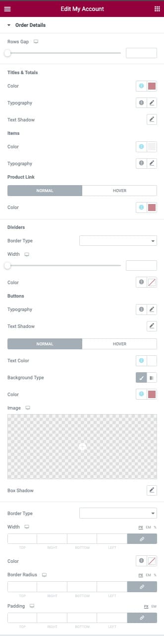 Opțiunile filei Avansate globale sunt disponibile pentru Widge-tul WooCommerce My Account Widget.