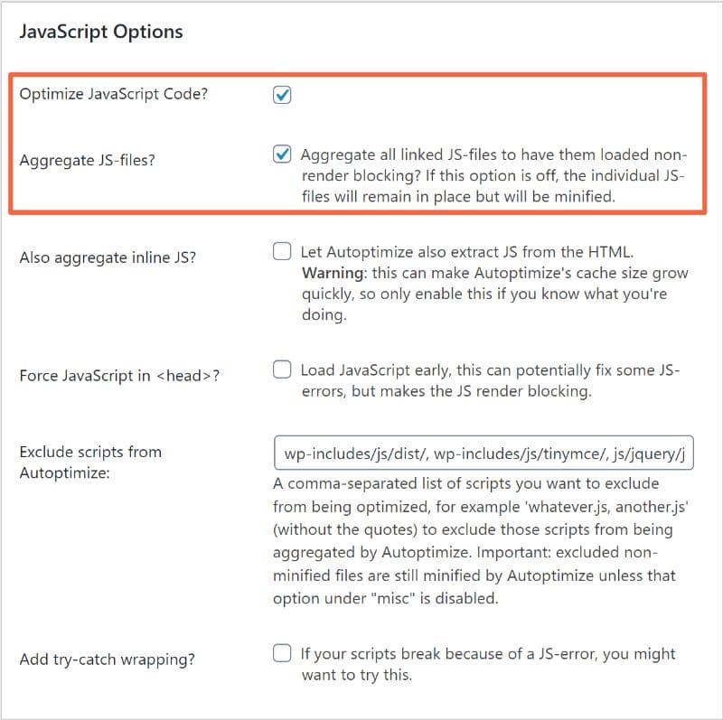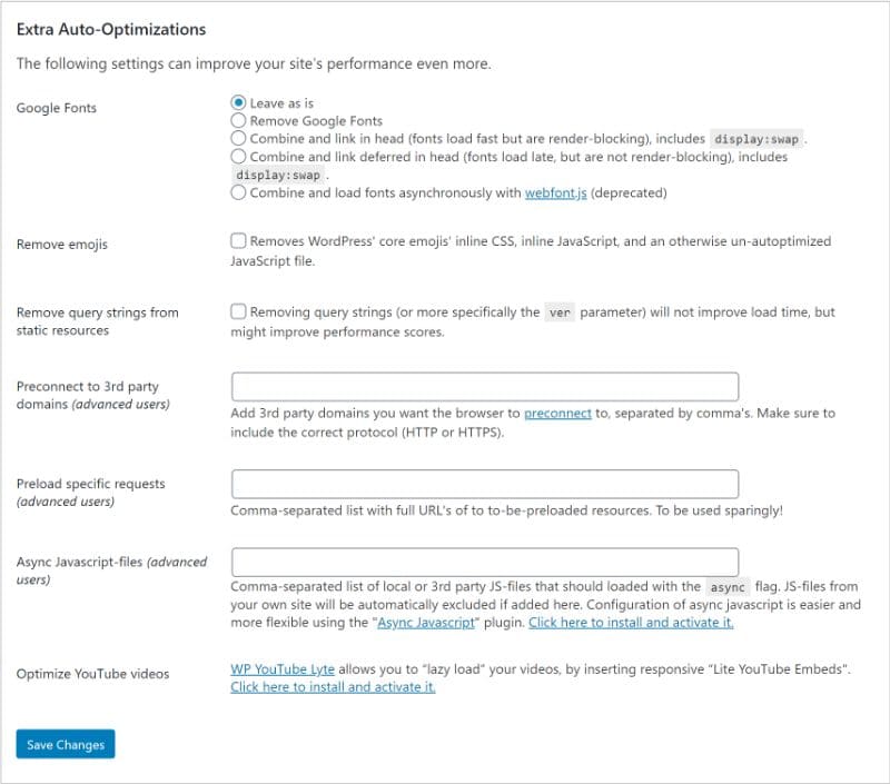 - Cu Autoptimize – puteți alege exact cum funcționează această optimizare. De exemplu, le-ați putea încerca, blocarea redării, amânarea acestora, elimină-le cu totul etc.