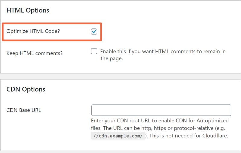 Sub Opțiuni HTML, bifați caseta pentru Optimizarea codului HTML.